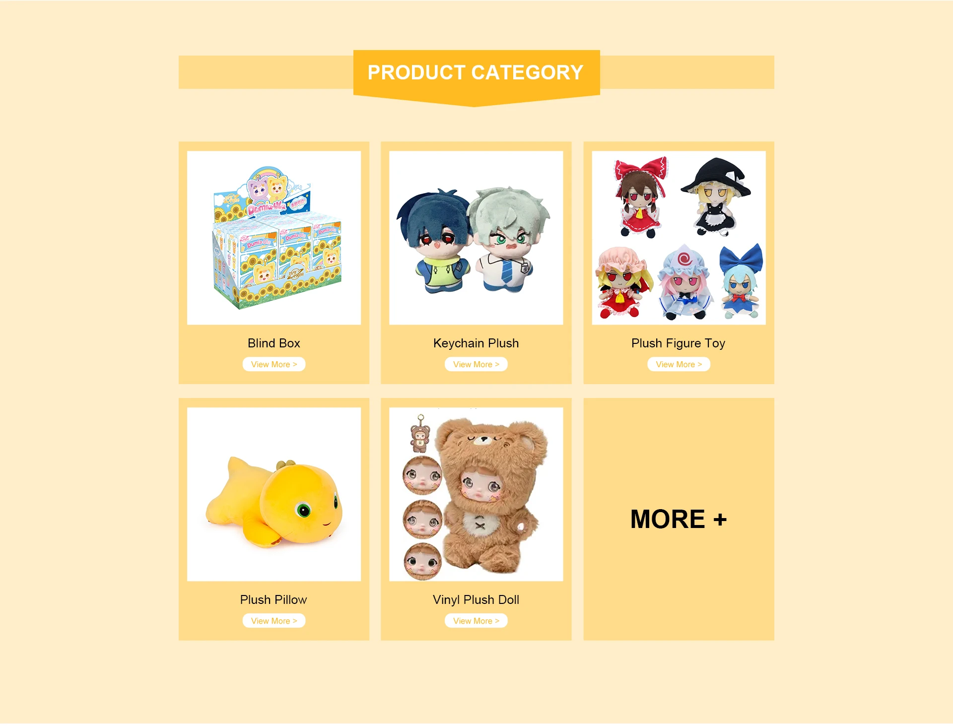 Belangrijkste producten:Knuffels, blinde doos, poppen en poppenaccessoires, speelgoedfiguren, huisdierenspeelgoed